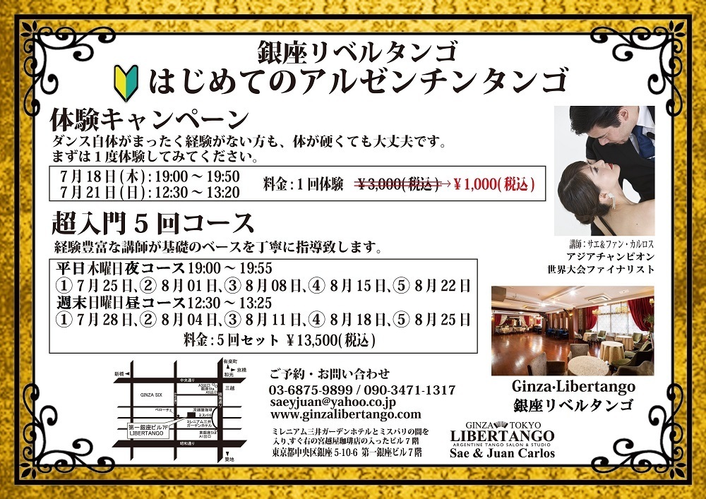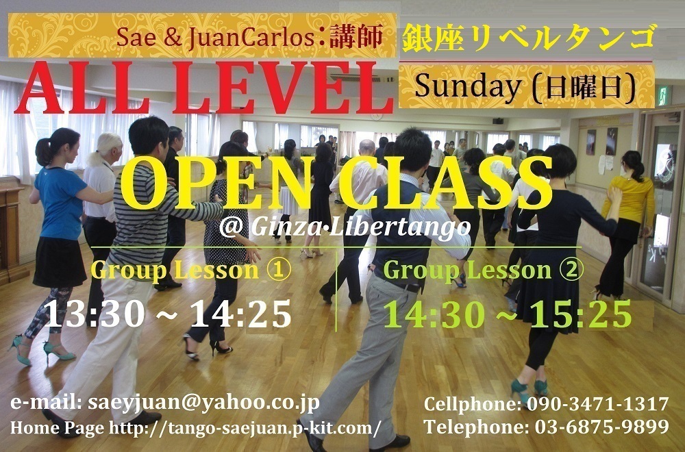 *お問合せ&ご予約 銀座リベルタンゴ(Sae&JuanCarlos) 090-3471-1317 または saeyjuan@yahoo.co.jp