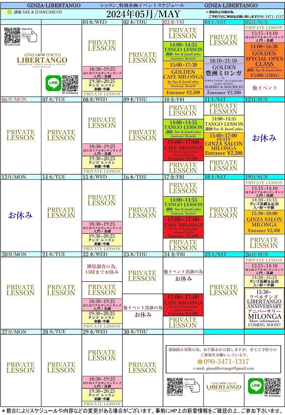 内容やスケジュールの変更などある場合があります際は、早めにHPのレッスン・イベントスケジュールやこちらのブログにお知らせ致します(^-^)