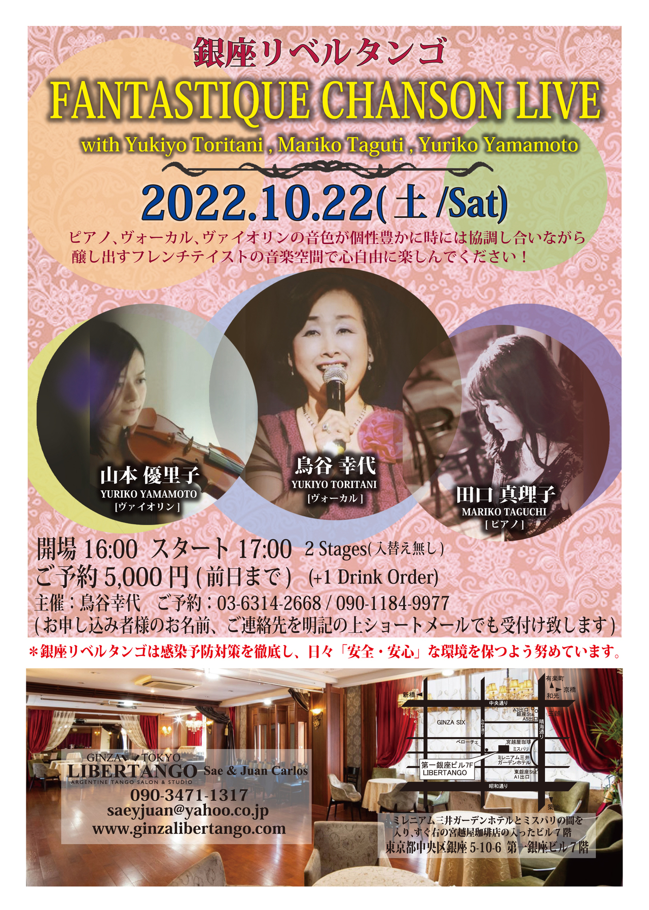 こんばんは!本日2度目の更新です(^-^) 今週末は月曜にかけて連休ですね!連休中のタンゴライブのご案内です!