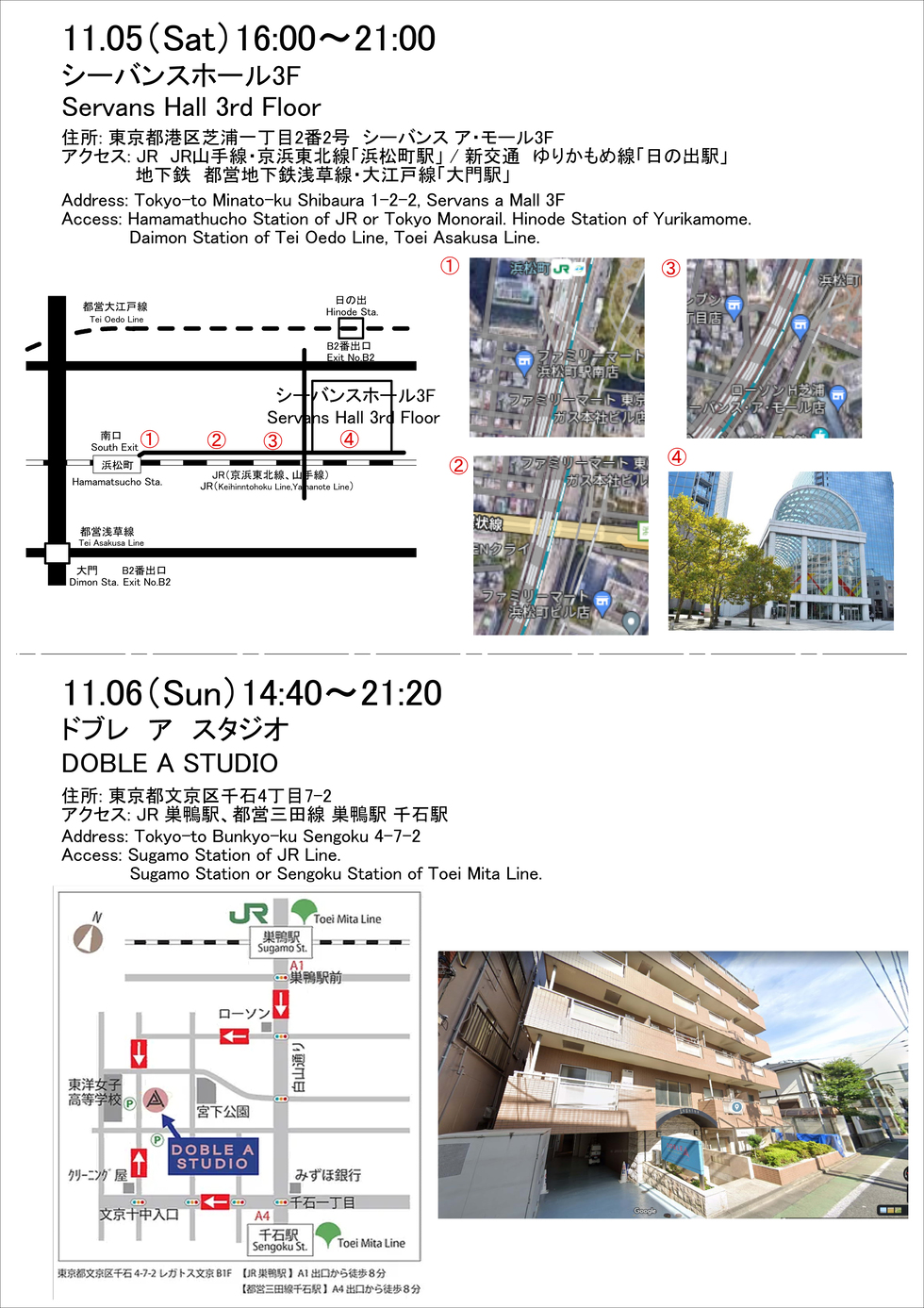 長くなりましたが、初日の会場だけは祝日で空いている場所、広さやアクセス、音響や床などの条件に合う会場が見つからず困難でしたので、やっと良い会場が見つかり嬉しくなりました 4、5、6日の会場も決定していますので順次ご案内してまいります! 取り急ぎご報告まで