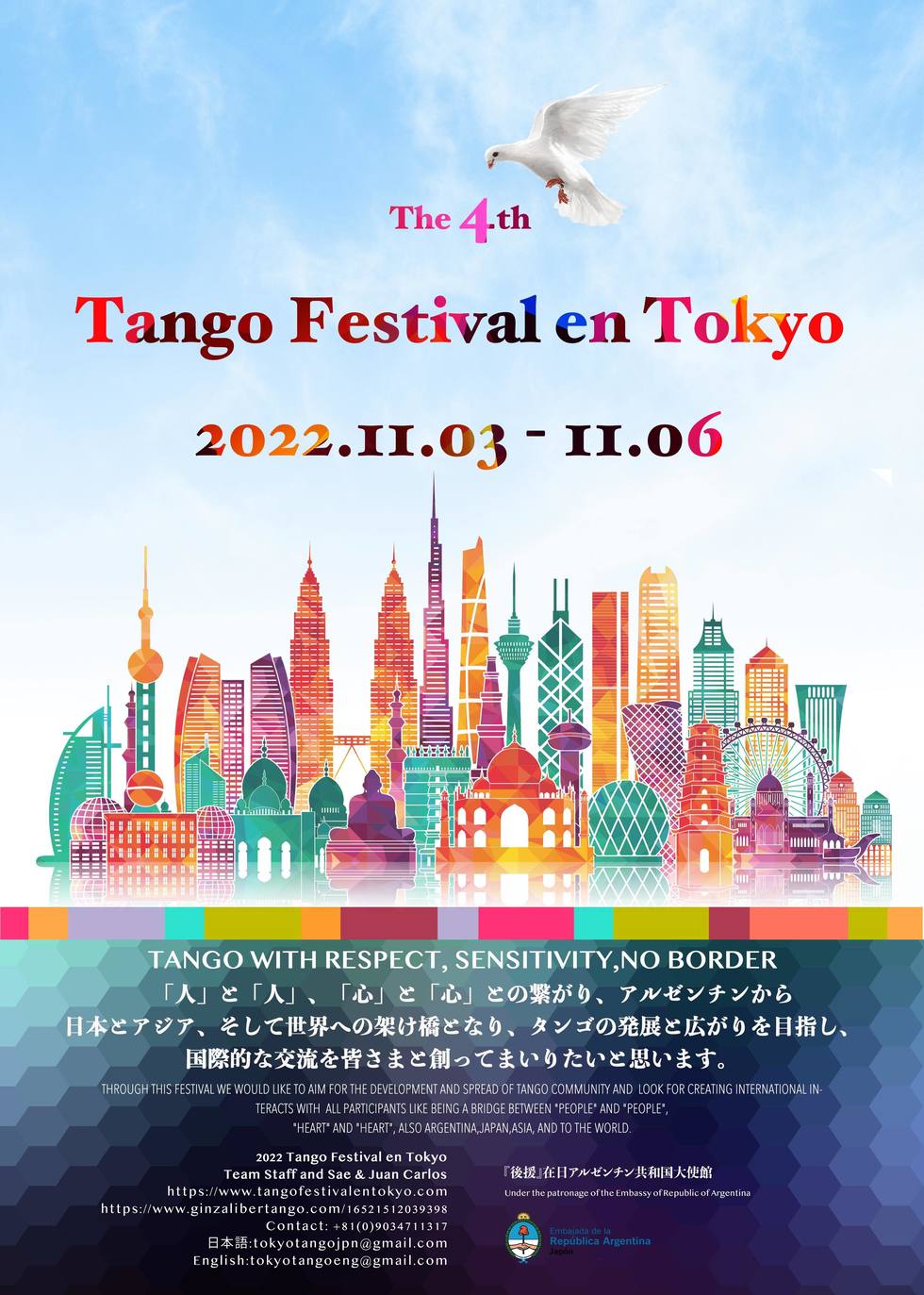 おはようございます! コロナ禍で開催を延期にしてきました【4th Tango Festival en Tokyo2022】☆彡 今年は時期を変え11月3日(木祝)~11月6日(日)に開催します! 詳細はまだこれから決まり次第お知らせしてまいりますが、動画が出来ましたので下に! 画像をクリックするとYouTubeでご覧いただけます!