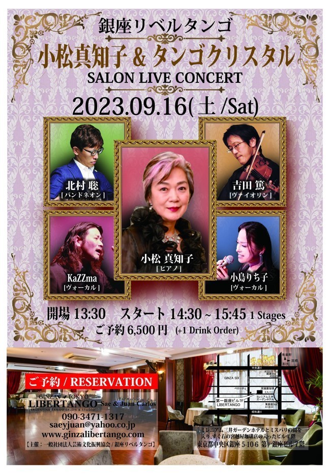 16日土曜日はタンゴコンサート「Flor de Tango」峰万里恵さんウェルカムバックライブ♪