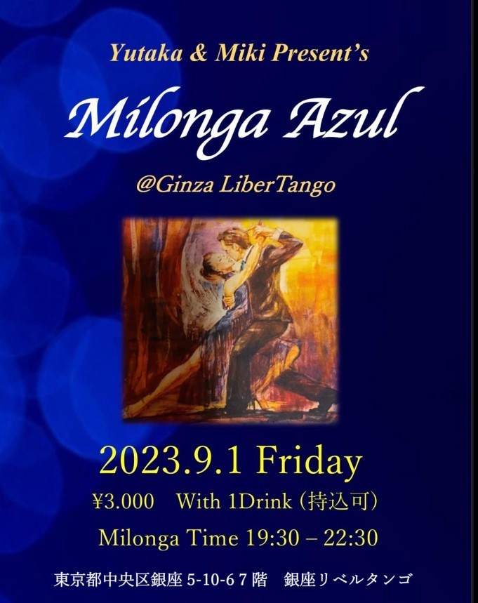そして、明日は第1金曜日、お待ちかねYutaka&Miki先生主催ミロンガアスール19時半から22時半です!(^O^)