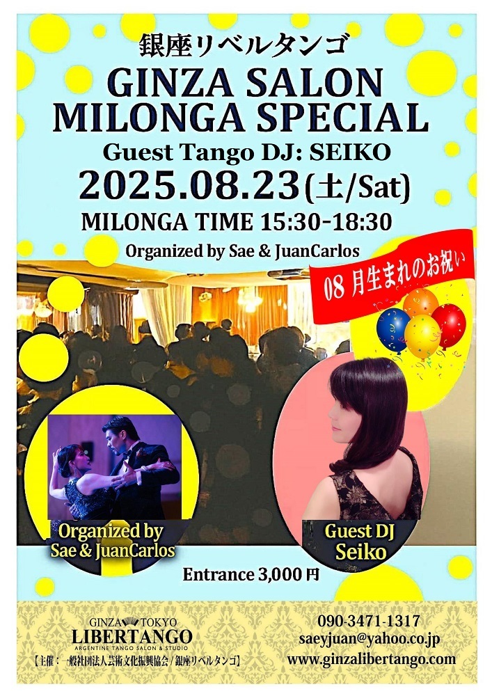 DJ:Seikoさんをお招きし、ミロンガの開催です!