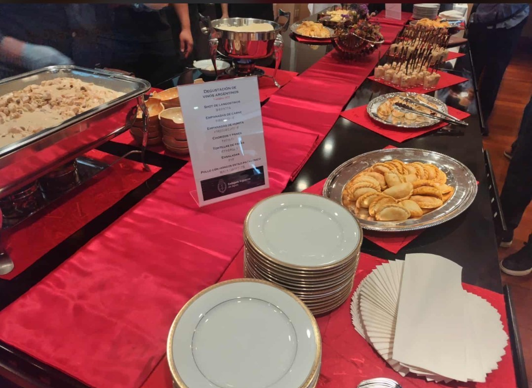 写真は、いつも温かく迎えて下さるアルゼンチン大使や公使とエンパナーダなどのお料理(^-^)