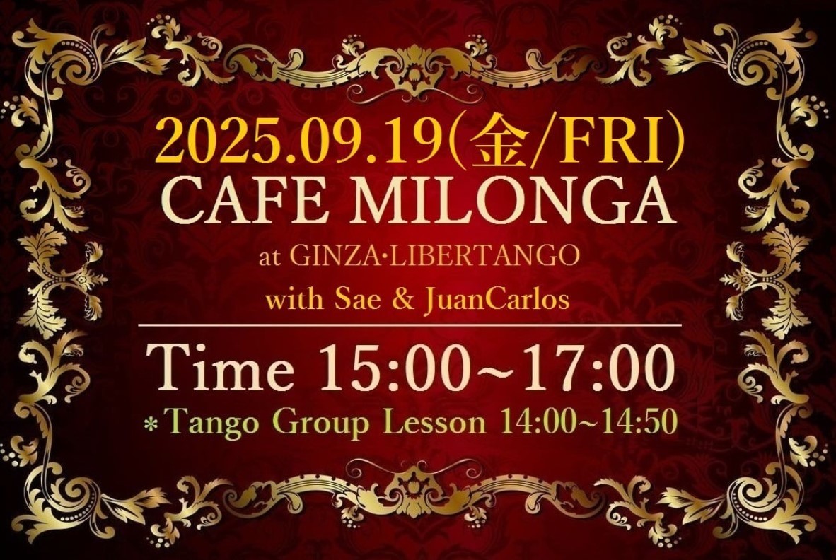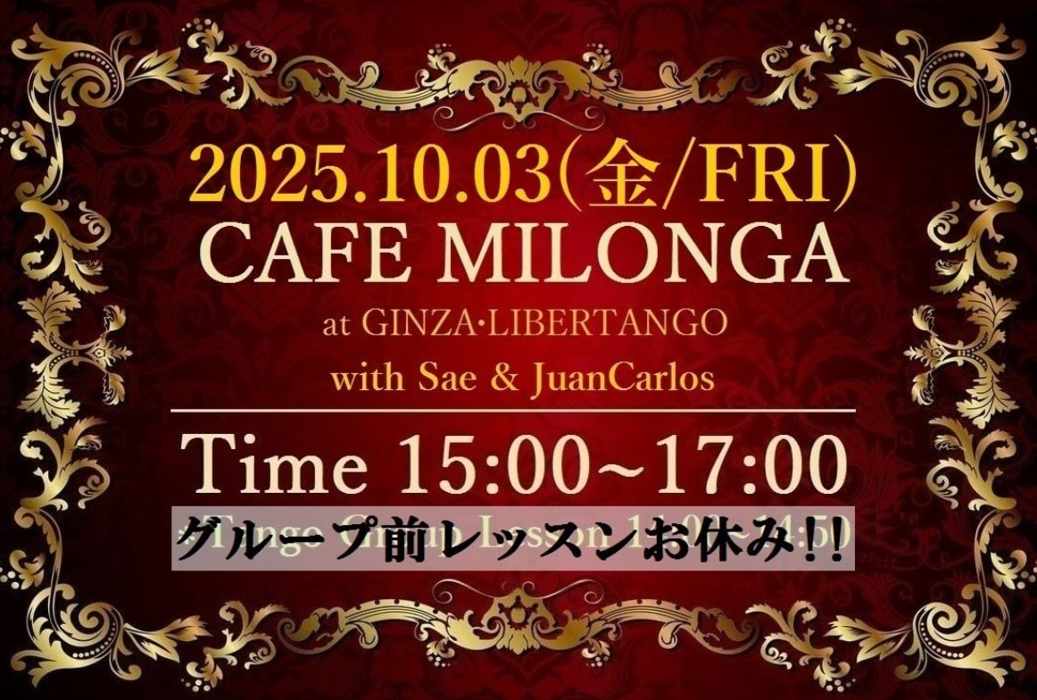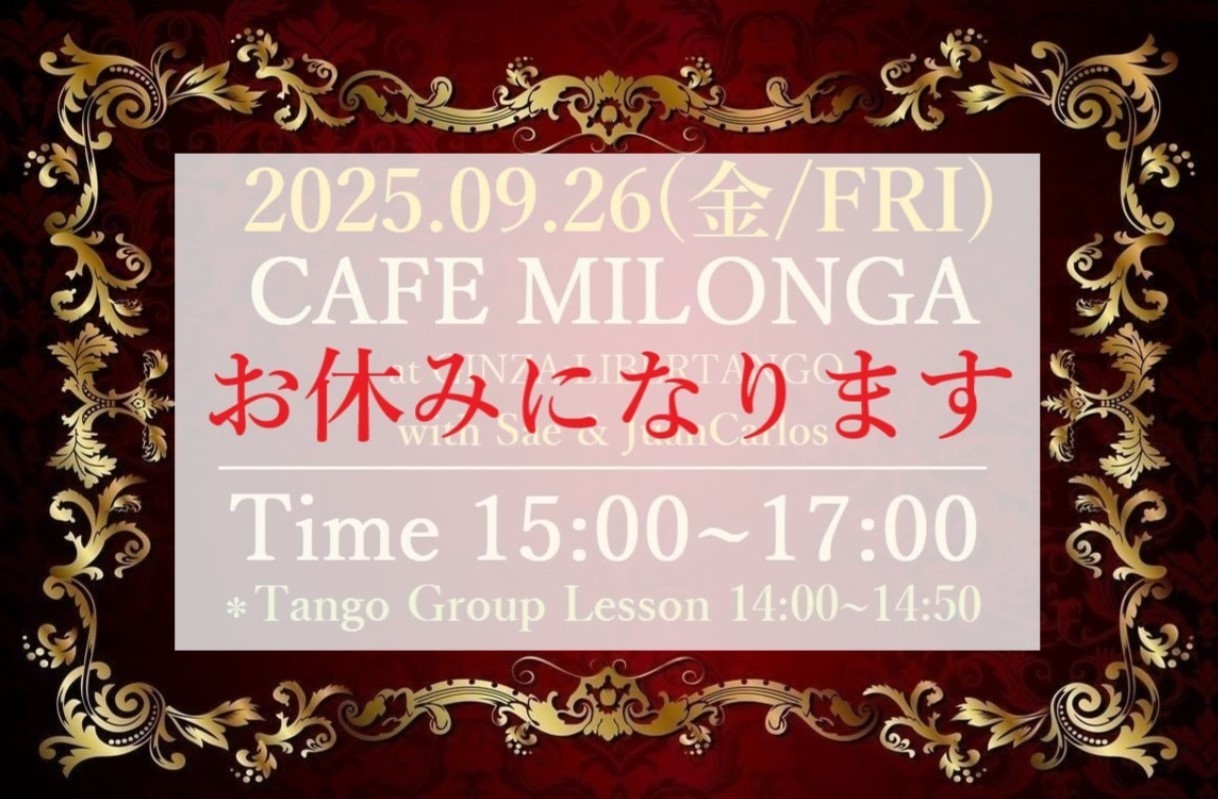 お知らせです! 明日金曜日のミロンガ前レッスンとカフェミロンガはお休みにさせて頂きます!