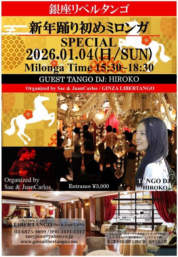 2026年は1月4日(日)のレッスンと新年踊り初めのスぺシャルミロンガからスタートです!