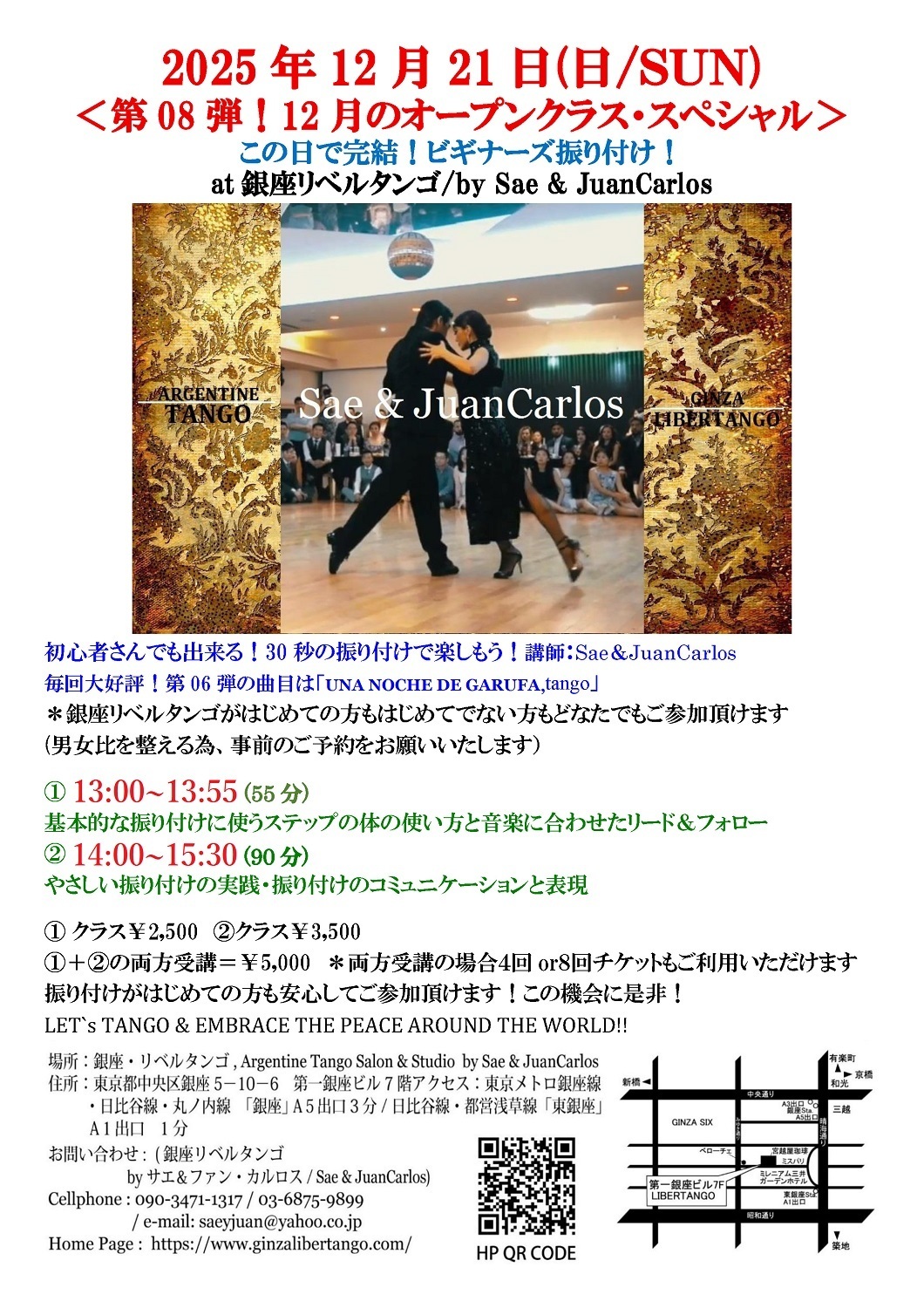 そして、昨日の12月のビギナーズ振り付けオープンクラスも皆さん頑張りました!(年末28日のミロンガでデモあります(^-^))