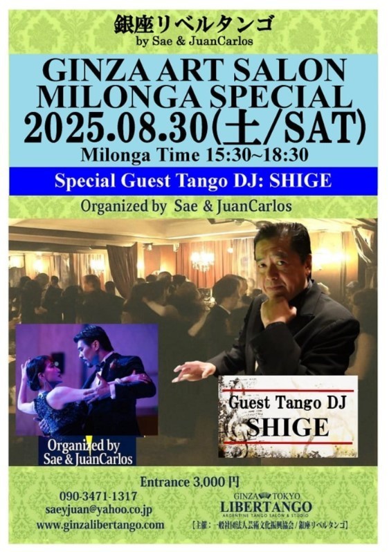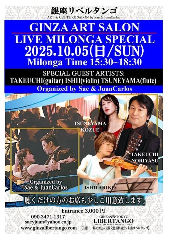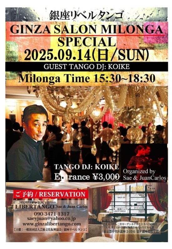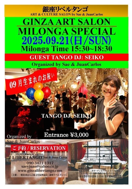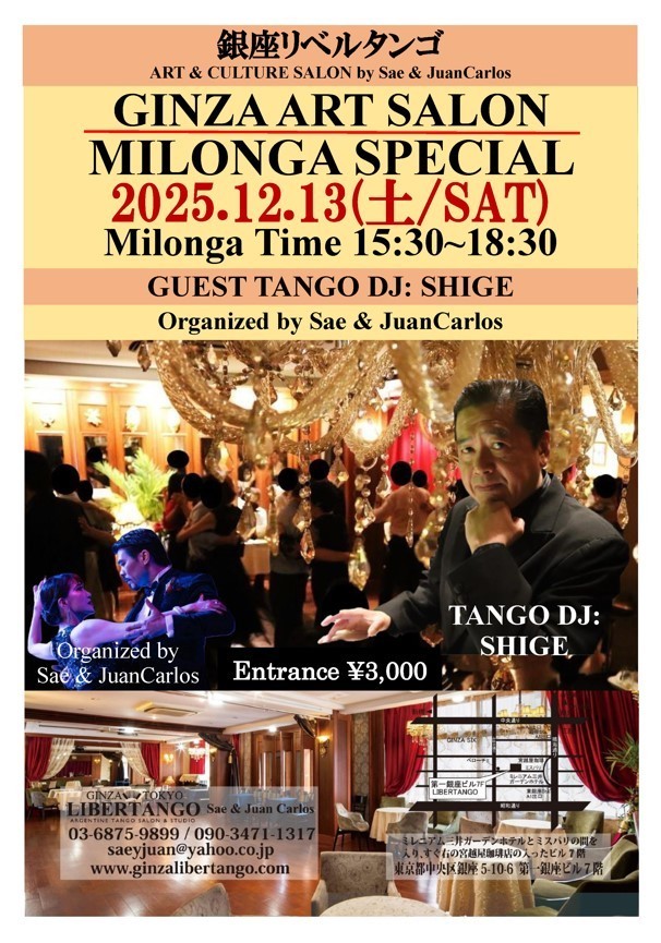 15時半からは素敵なゲストをお招きし、銀座サロンライブスペシャルミロンガの開催です!