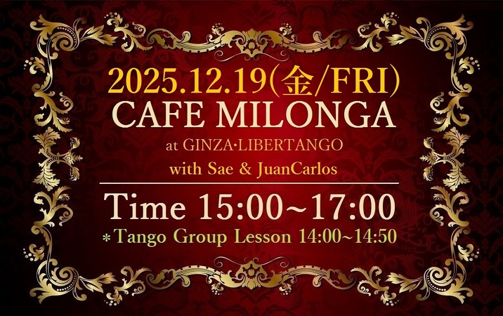 来週も土曜日曜と夜に他のイベントがあり、ミロンガは金曜カフェミロンガ、土曜日に14時からクリスマスライブミロンガと続き、日曜日はスペシャルオープンクラスになります♬