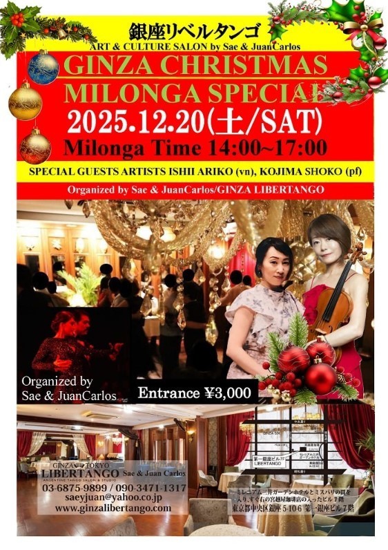 選りすぐりのタンゴ音楽とダンスで素敵なクリスマスミロンガを☆彡