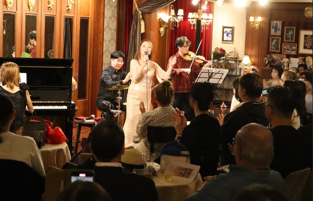 今回はKENYAさんのダイナミックなパーカッションが加わり、スパイスが効いた演奏とソプラノ歌手山本輝子さんの魅力的な美しい歌声が響きわたりました♬