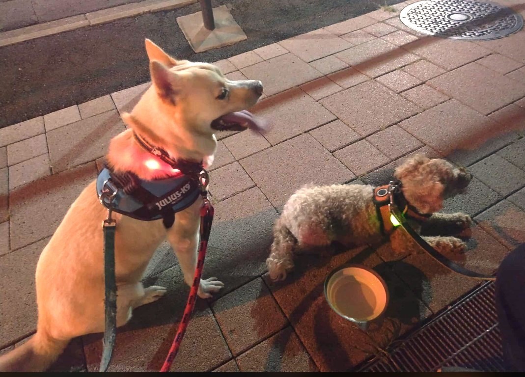 昨夜はスタジオから早めに戻り、小降りのうちに急いでワンちゃん達のお散歩へ