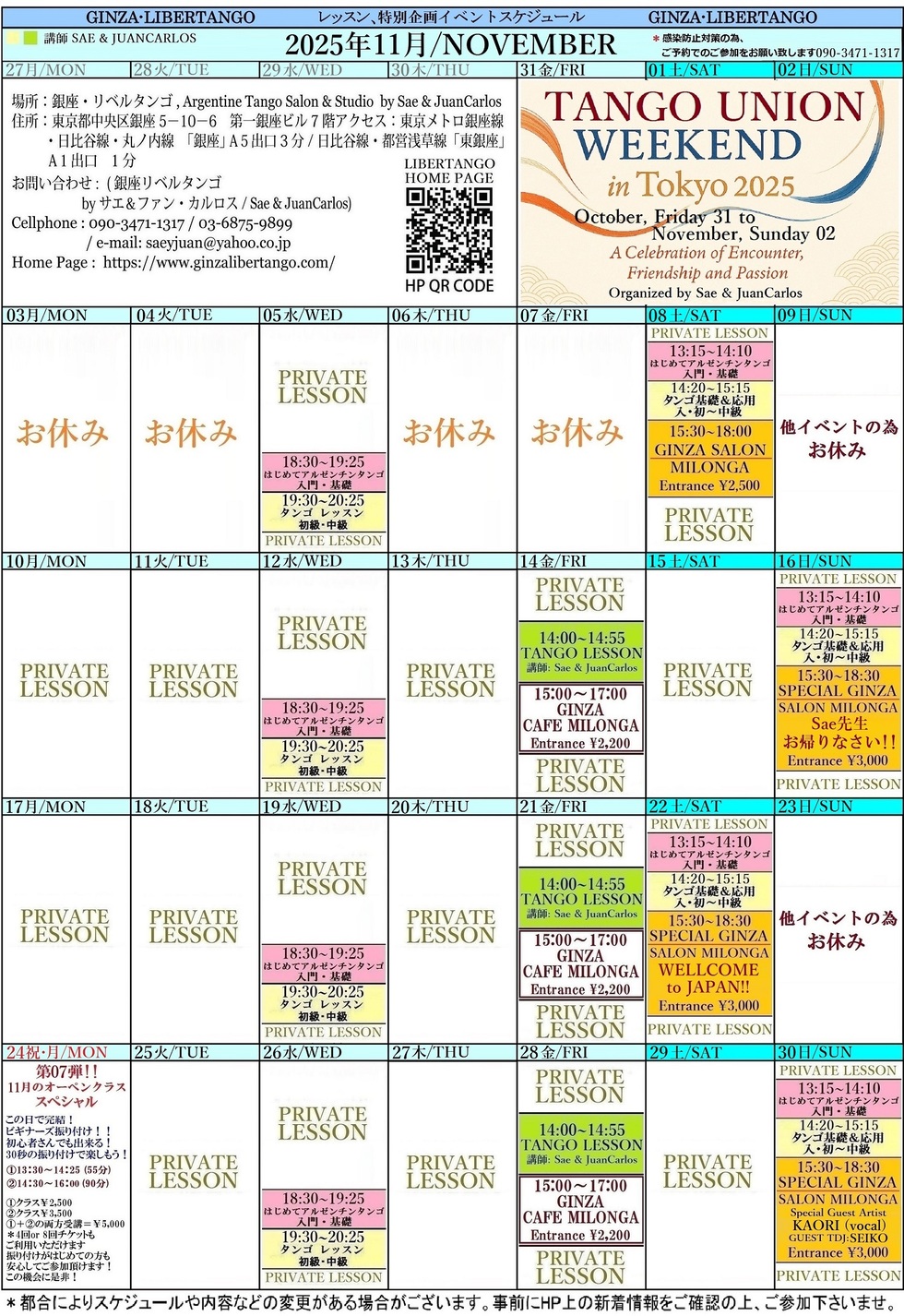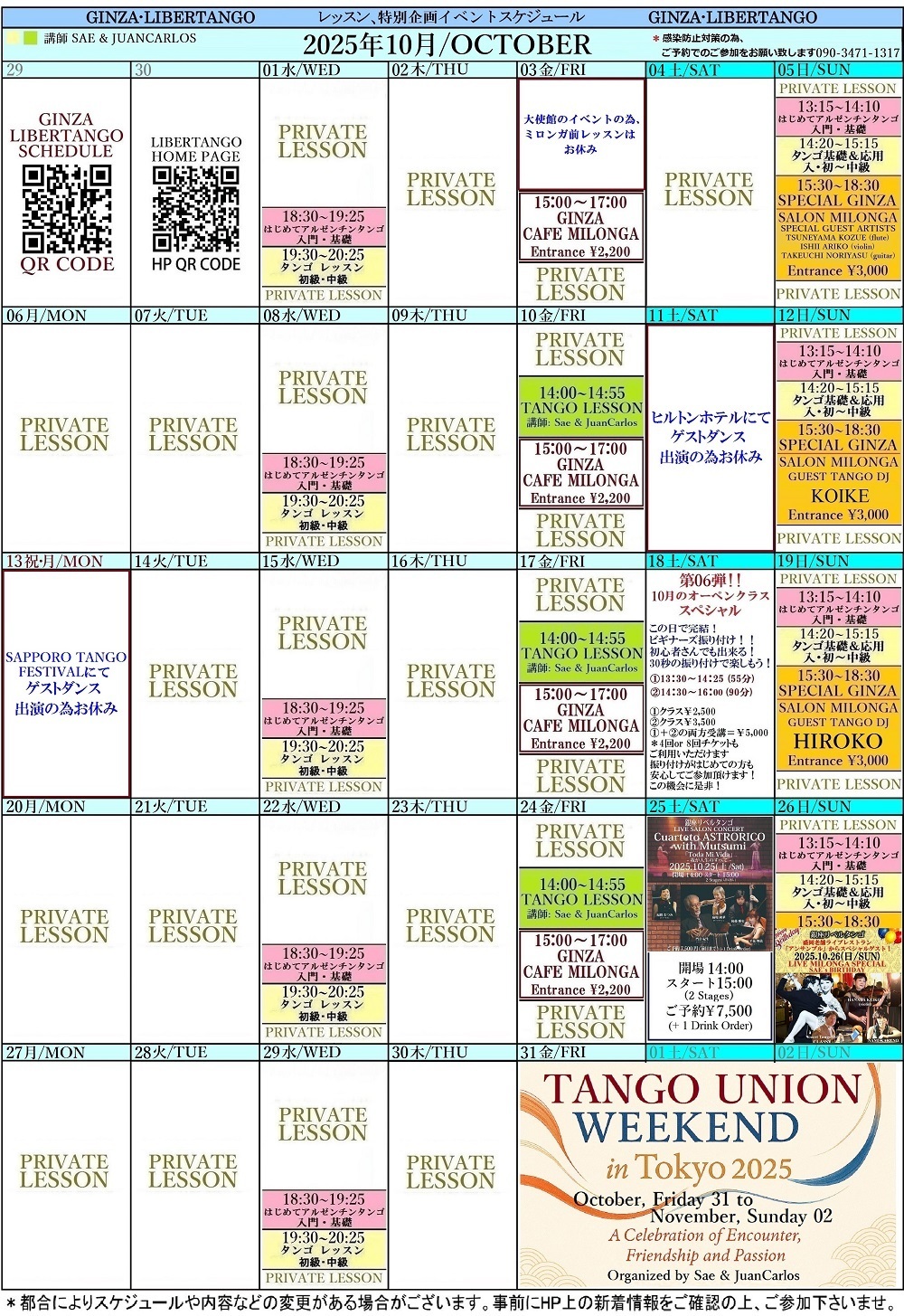 ブログ「歩きながらタンゴ」2019年10月30日以降~のhttps://www.ginzalibertango.com/greetingには最新情報